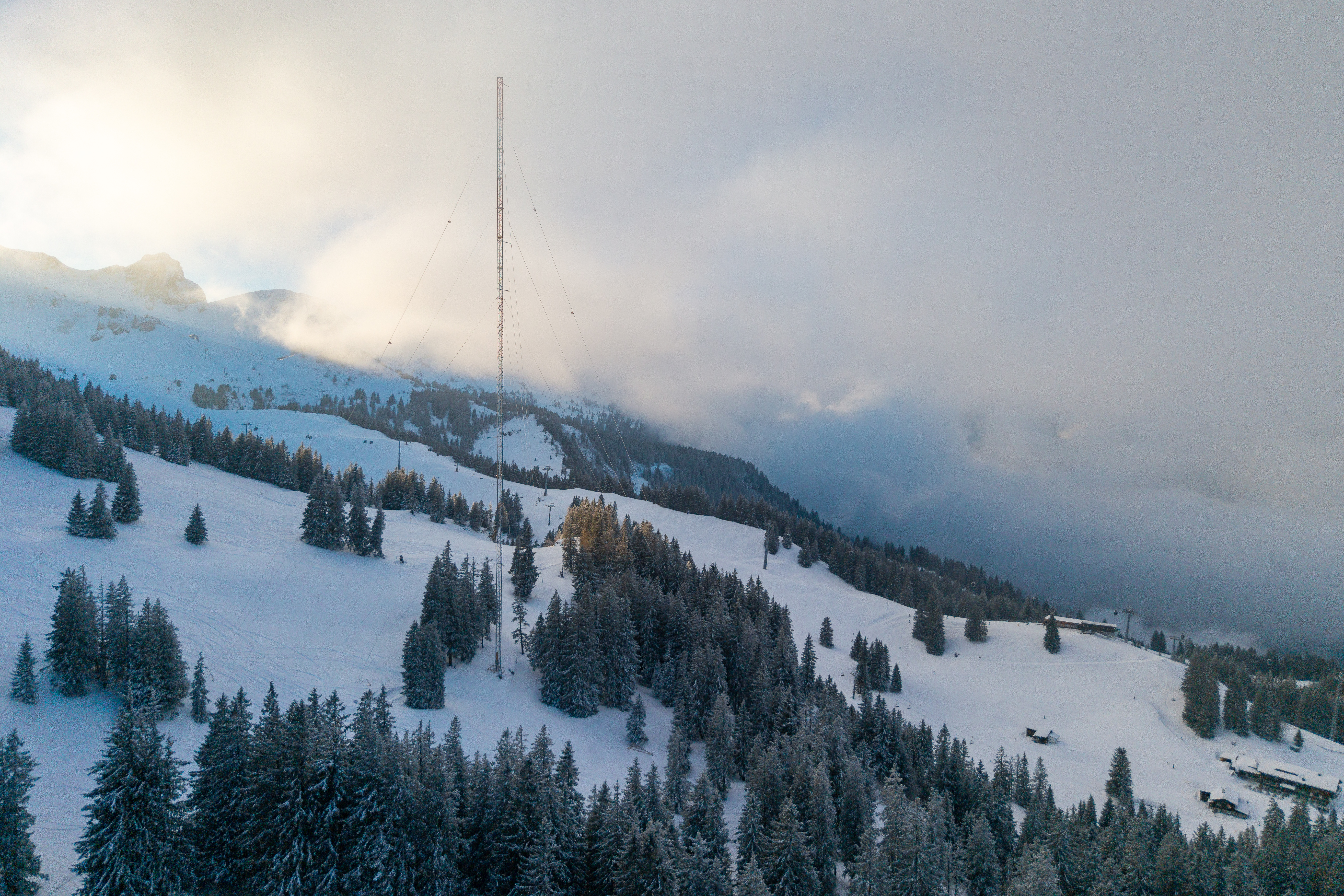The 120-metre-high wind measurement mast on the “Grappenchöpf” area at Flumserberg will be dismantled on Tuesday, 4 November. The mast recorded data on wind speed and wind direction at various heights. In addition, bat activity was recorded to assess the impact on local fauna and to develop appropriate protective measures.